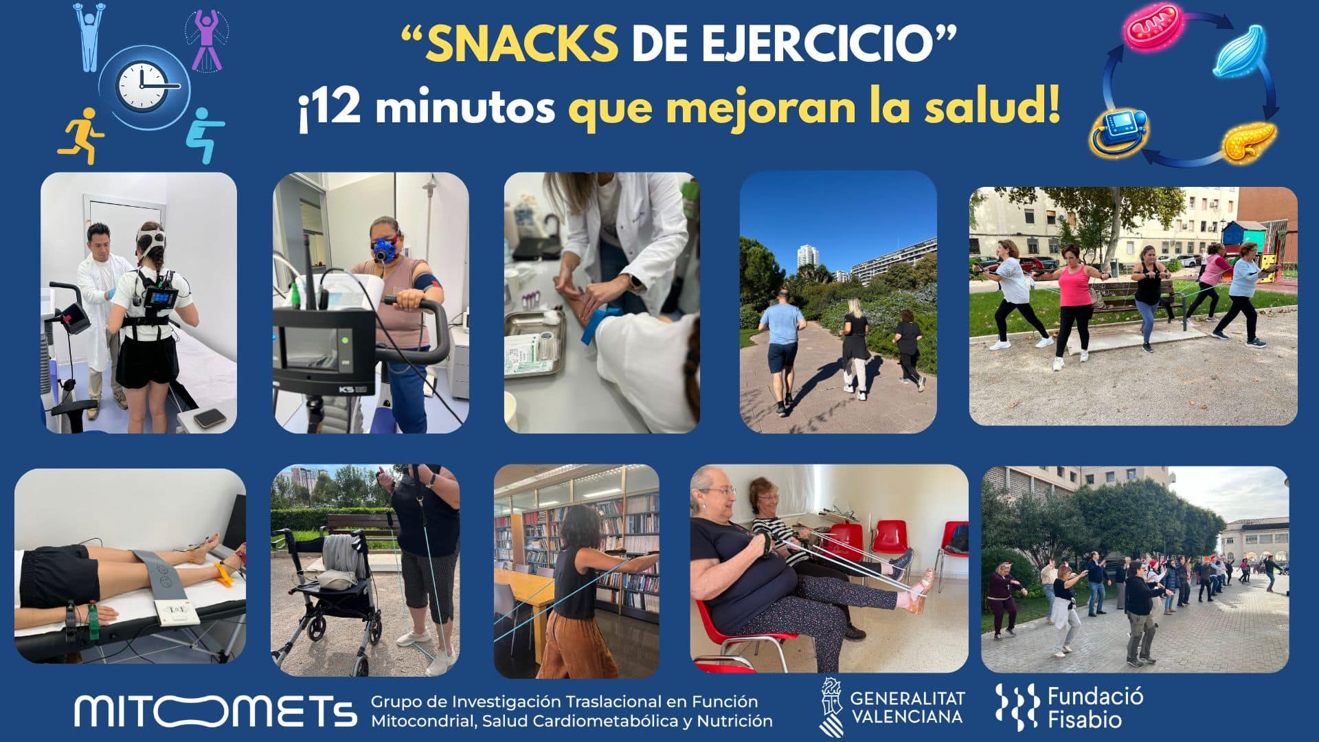 Esta metodología fue evaluada inicialmente en el estudio “Effects of 8-Week Exercise Snacks on Muscle Oxygenation and Cardiometabolic, Mitochondrial and Subclinical Atherosclerosis Markers in Sedentary Women”, obteniendo resultados muy positivos en salud cardiovascular, metabólica, muscular y en aptitud física. El impacto de estos hallazgos dio lugar a un nuevo programa de Snacks de Ejercicio Físico dirigido a personas con diabetes tipo 2, manteniendo la misma estructura breve, accesible y basada en la evidencia científica.