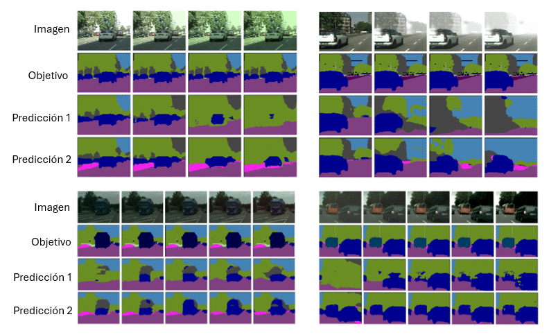 En 2023, publiqué el artículo “Neural Networks with Divisive Normalization for Image Segmentation” en la revista Pattern Recognition Letters. En este trabajo, una continuación de mi trabajo de Fin de Máster, mostramos cómo la incorporación de mecanismos de adaptación inspirados en la neurociencia, como la normalización divisiva, no solo mejora el rendimiento de las redes neuronales en la detección de objetos, señales de tráfico y personas en conducción autónoma, sino que también las hace significativamente más robustas, especialmente en condiciones climáticas adversas, como niebla o poca iluminación, que son escenarios críticos para la seguridad en la conducción autónoma. Nuestros resultados demuestran ganancias de hasta un 20% en la detección de objetos y personas en las imágenes donde la climatología es especialmente adversa como en el caso de niebla muy densa.