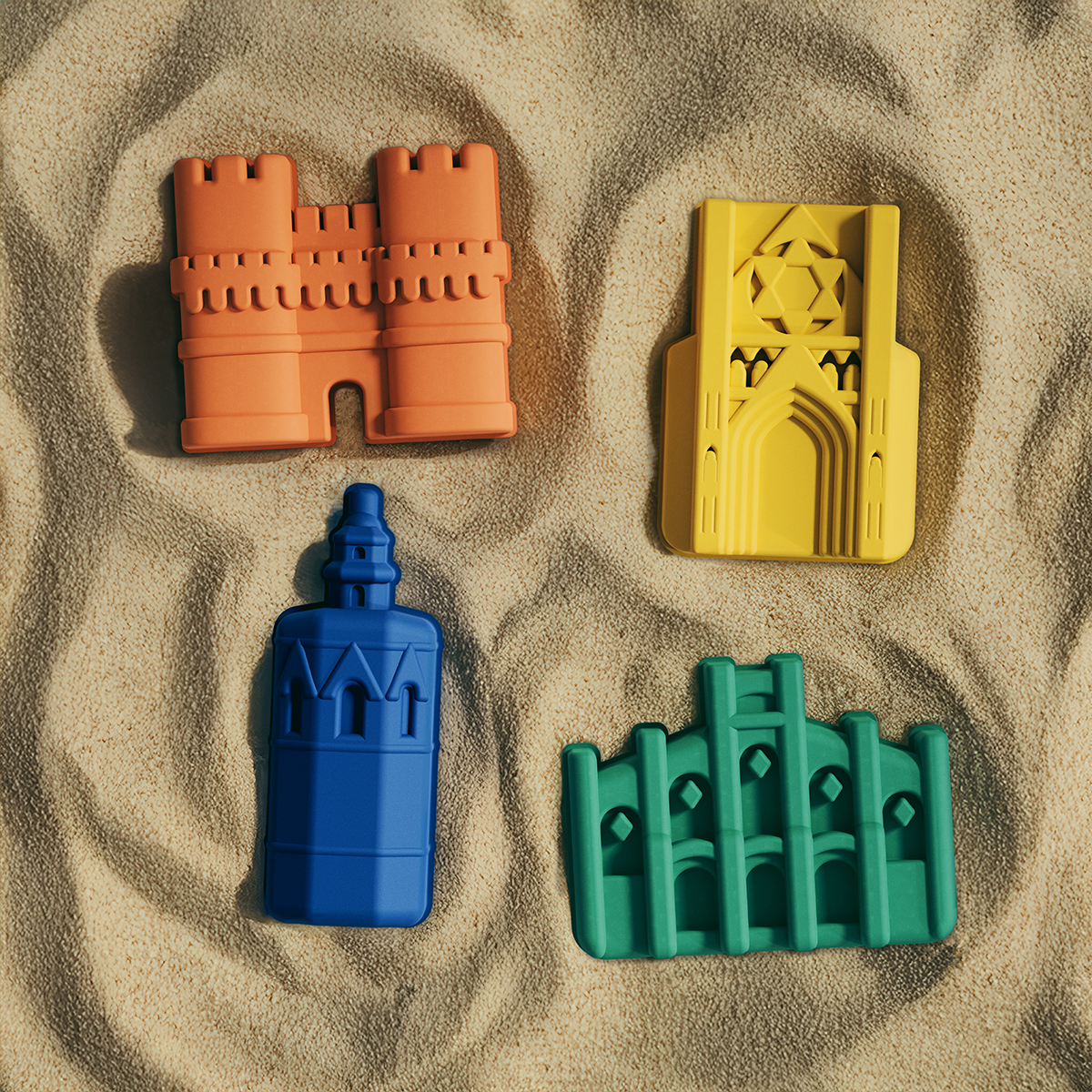 ¨Areneta¨ es un proyecto autoproducido que consiste en un set de moldes infantiles concebido como una herramienta de juego y aprendizaje. Su objetivo es acercar a los niños al patrimonio arquitectónico y cultural de Valencia a través de una experiencia lúdica, sensorial y accesible. El proyecto toma inspiración las rutas impulsadas por el Ayuntamiento de Valencia para redescubrir la ciudad a través de su historia, sus espacios cotidianos y su arquitectura, reinterpretándolas desde una mirada infantil, accesible y lúdica. La propuesta presentada se articula a partir de una de estas rutas, La Barraca, basada en la novela homónima de Vicente Blasco Ibáñez. A partir del recorrido que realizan sus personajes, se define un itinerario que atraviesa distintos enclaves representativos de la ciudad. Estos espacios se seleccionan y reinterpretan formalmente para ser traducidos en moldes, adaptando su arquitectura y simbología a un lenguaje comprensible para el público infantil. El objetivo principal de Areneta es acercar el patrimonio local a los más pequeños mediante el juego simbólico, fomentando la creatividad, la exploración sensorial y la curiosidad como herramientas de aprendizaje y de vínculo emocional con el entorno. A través del juego en la arena, los niños pueden reconocer formas, volúmenes y referencias arquitectónicas presentes en su día a día, estableciendo una relación directa entre la ciudad que habitan y su universo lúdico. El set está fabricado en silicona de grado platino y diseñado con dimensiones comprendidas entre los 12 y 15 cm de longitud, un tamaño estudiado para adaptarse cómodamente a las manos infantiles. Pensado para una franja de edad amplia, de 3 a 16 años, el diseño favorece una manipulación sencilla y segura, potenciando el agarre, el control del gesto y la autonomía durante el juego, al tiempo que permite distintos niveles de complejidad y exploración según la edad del usuario. De este modo, Areneta propone una nueva forma de acercar el patrimonio a la infancia, integrando diseño, cultura y aprendizaje en un objeto que fomenta el vínculo emocional con el entorno desde las primeras etapas de desarrollo.