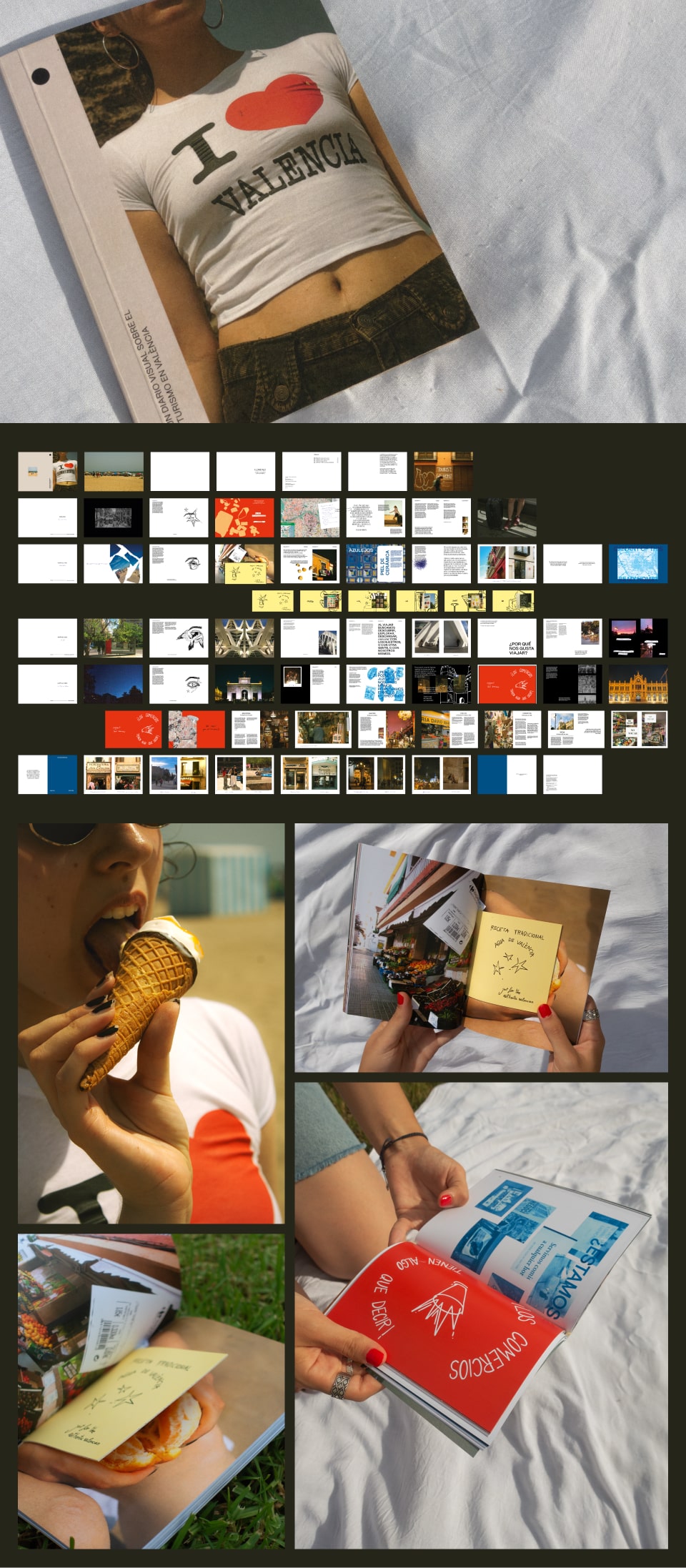 I <3 VLC es el nombre que recibe mi TFG del Grado en Diseño y Tecnologías Creativas de la Universitat Politécnica de Valencia. Este diario visual sobre el impacto del turismo masivo en la ciudad de Valencia trata diferentes cuestiones sociales y culturales que han provocado cambios en la ciudad, además de afectar a la vida de la gente local.