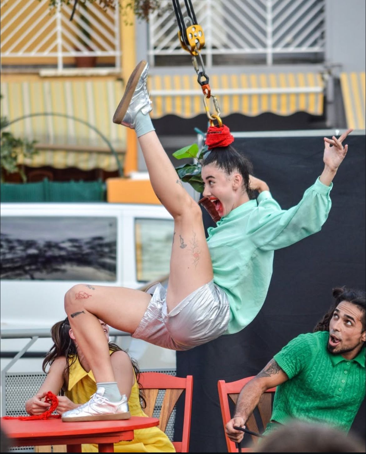 «Caso Enterrado » es una pieza de circo y danza donde el público se convierte accidentalmente en testigo del naufragio de una familia en apariencia impecable. Se abre la puerta de una casa en la que los cuerpos ausentes navegan entre el caos, instantes de lucidez y disociación total. La acumulación de detalles horripilantes y peripecias deja poco a poco filtrar el malestar de familia más funcional de la Península Ibérica. Es un espectáculo de comedia y misterio que se desarrolla a través de la cristalera de una casa.