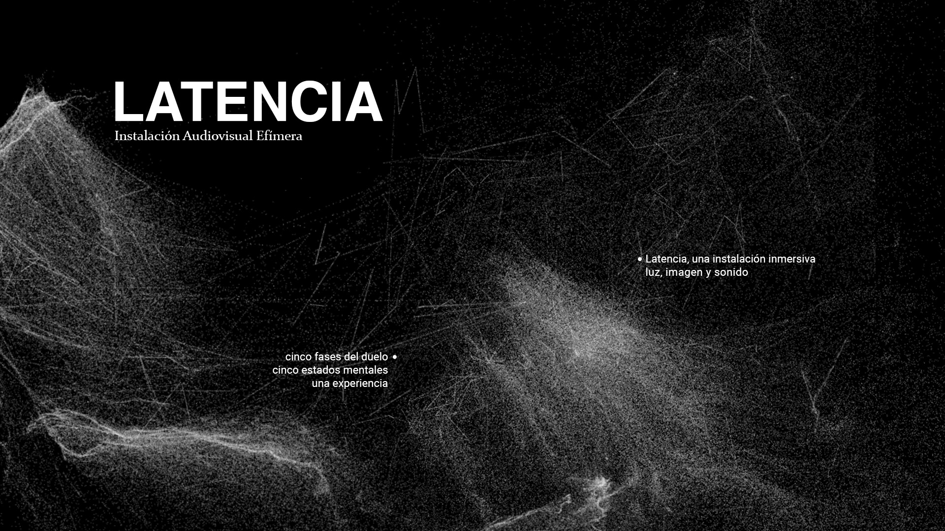 “Latencia” es una instalación audiovisual inmersiva que transforma un espacio arquitectónico en una experiencia sensorial íntima y profundamente emocional. A través de la integración de luz, imagen y sonido, la propuesta invita al público a vivir un recorrido introspectivo inspirado en las cinco fases del duelo, entendidas como un proceso emocional universal. La obra se concibe desde el arte como experiencia:
