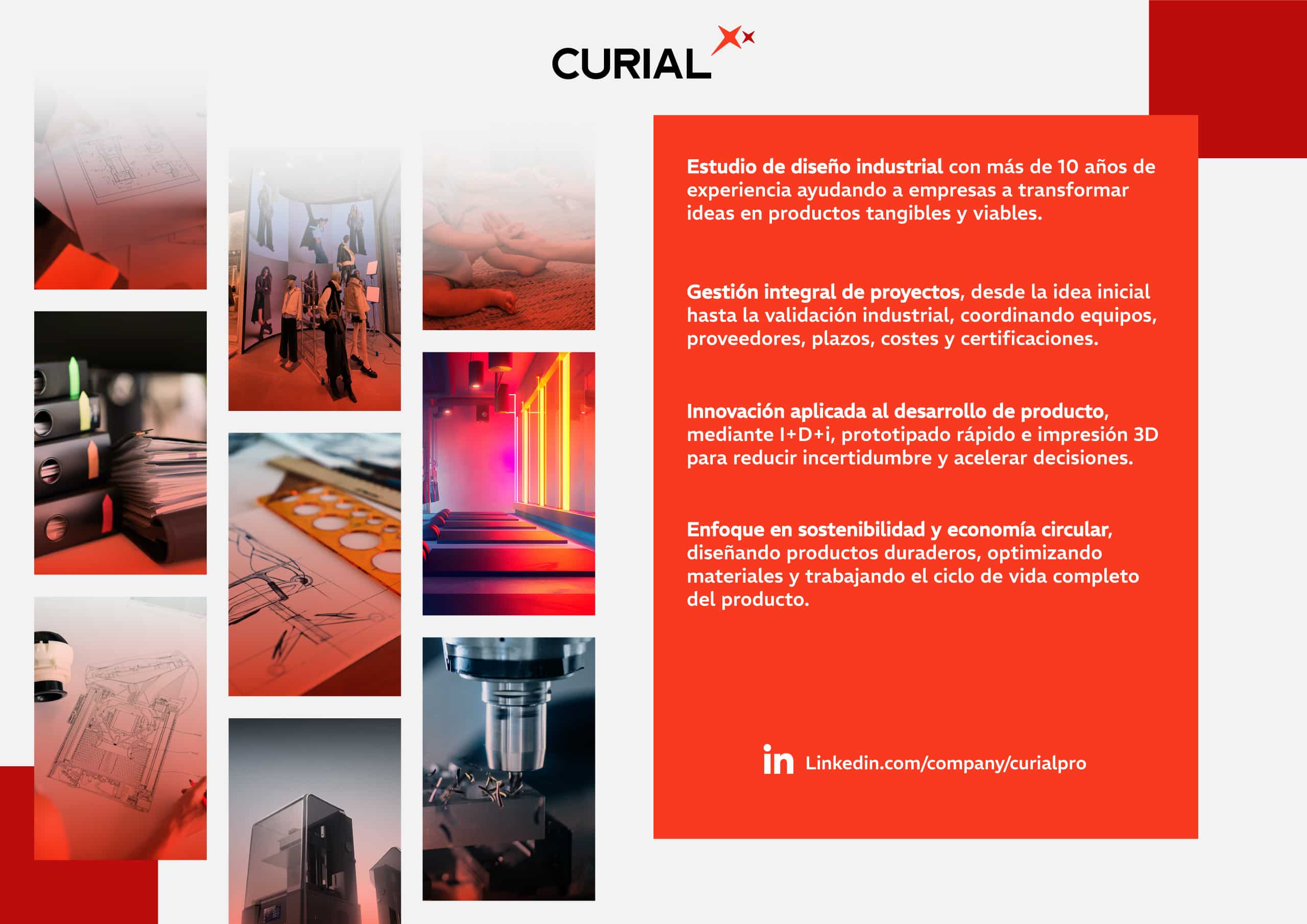 Curial es un proyecto joven con una visión a largo plazo integrada desde su origen. Construido sobre una base sólida de experiencia profesional, nace con ambición de impactar y con la voluntad de consolidarse como un partner estratégico para las empresas. Su objetivo es trabajar junto a clientes y organizaciones situando el diseño como una herramienta clave para competir, innovar y evolucionar.