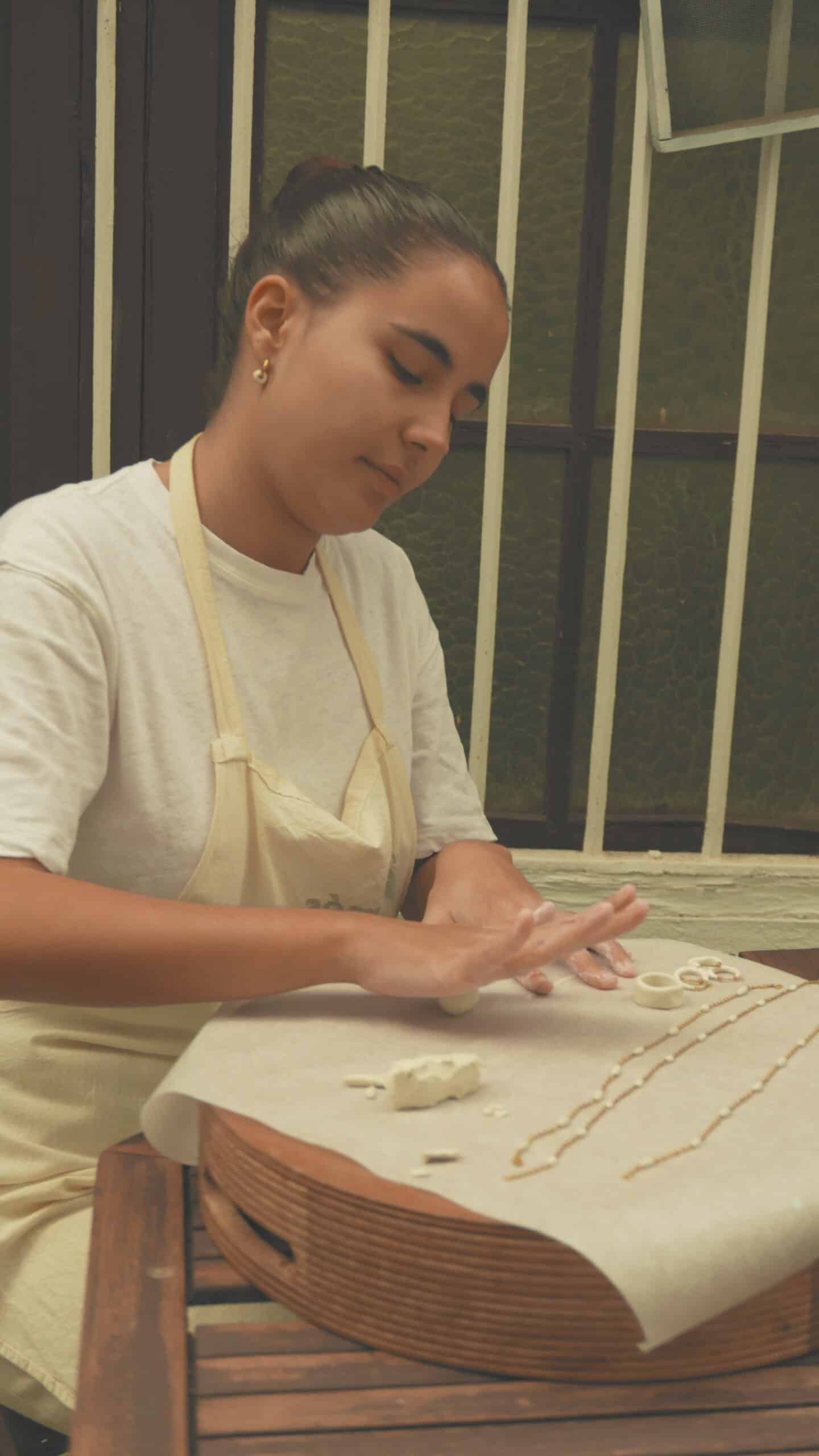 Los BICOS están diseñados y modelados por nosotras mismas en arcillas de secado al aire y otros elementos orgánicos, como conchas y piedras. Además, añadimos una capa de resina que ofrece un resultado mejor y más resistente.